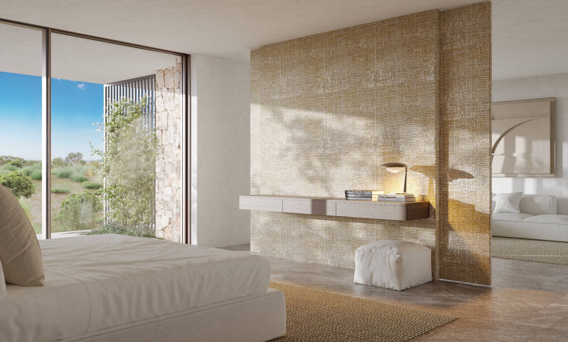 Located on a single floor, the villa follows the horizon lines that reach the sea. The materials reflect the colors of Sicily with delicate, neutral shades of stone. The finishes guarantee a sophisticated timeless, minimalistic style.